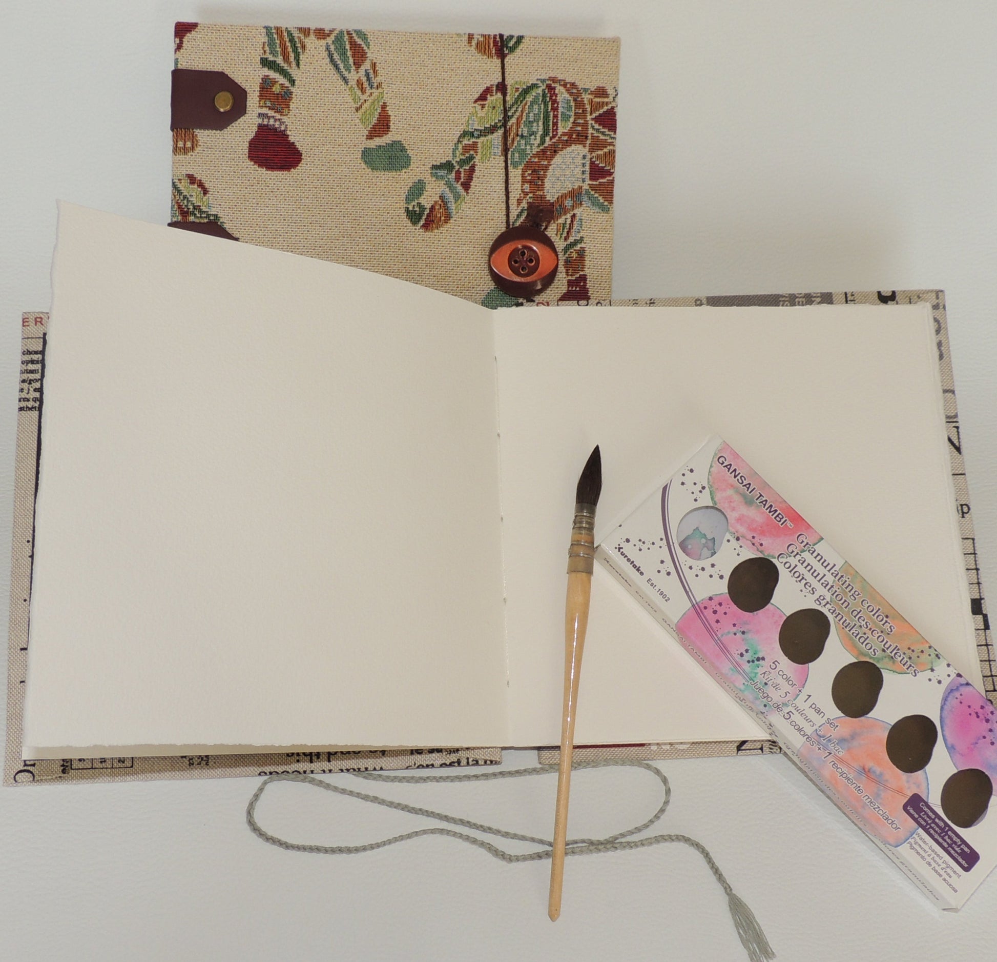 Carnet artisanal pour peinture aquarelle, fabrication et reliure faites main.